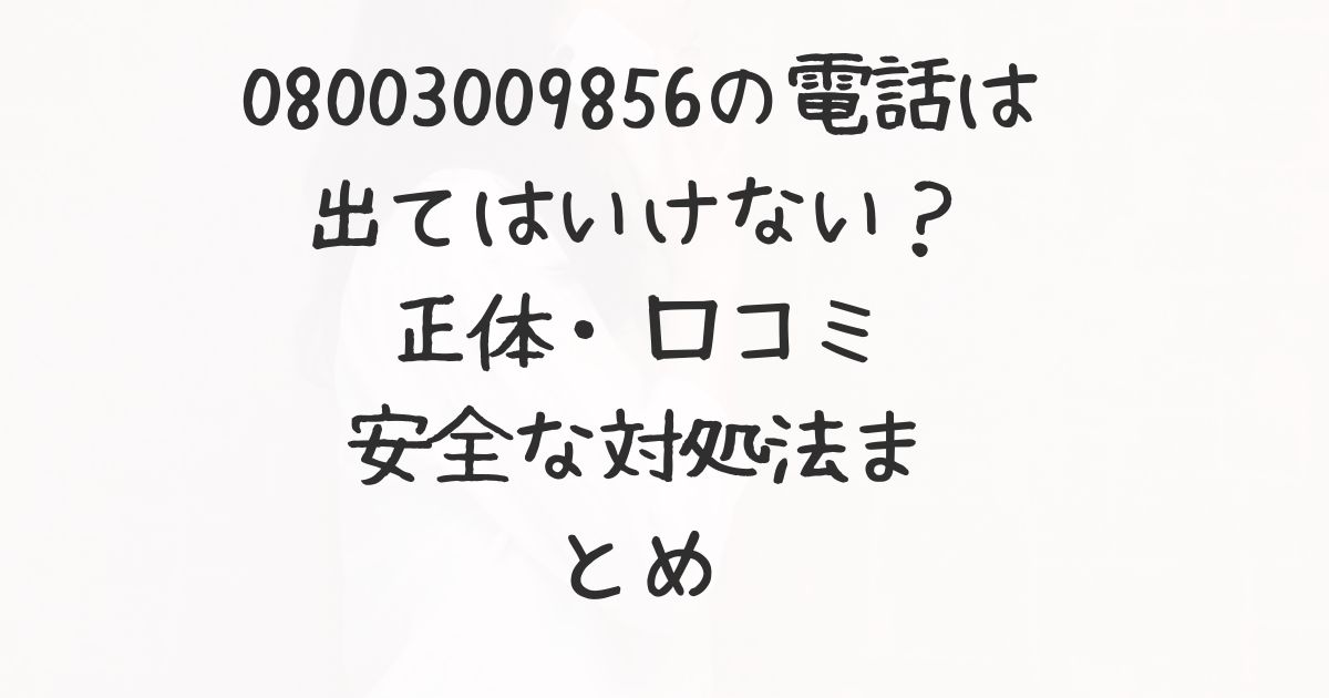 この記事では、「08003009856」の正体や口コミ情報を整理し、出てしまったときの正しい対応方法、無視・ブロックすべき理由をわかりやすく解説します。