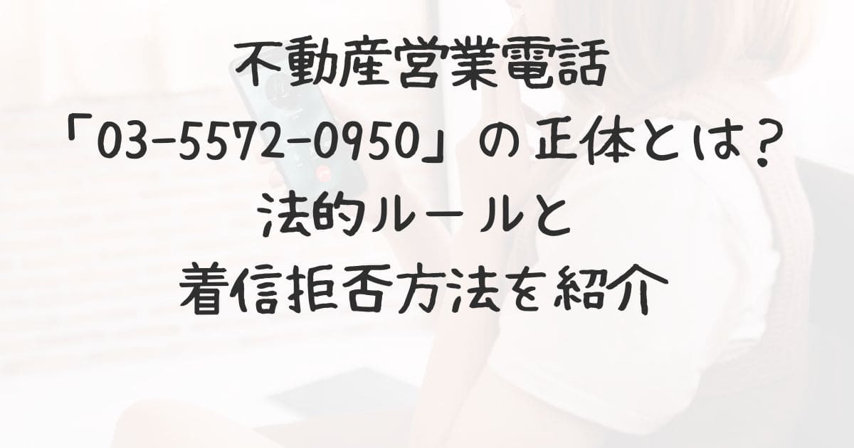 インターネット上の口コミや電話番号検索サイトによると、「03-5572-0950」は不動産投資や資産運用の営業電話として報告されている番号です。