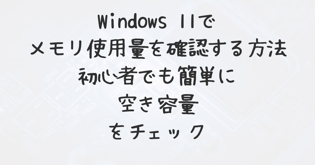 この記事では、Windows 11でメモリの使用量や、空き容量を、正確に確認する方法を初心者の方にもわかりやすく解説します。