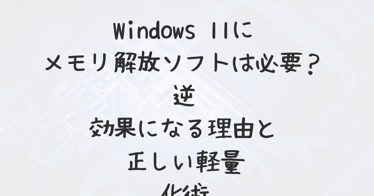 「最近Windows 11の動作が重く感じる」「メモリ解放ソフトを入れれば速くなるのでは?」──そんな疑問を持つ人は多いですよね。