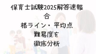 生活 保育士試験2025解答速報|合格ライン・平均点・難易度を徹底分析 2025年の保育士試験を受験された皆さん、本当にお疲れさまでした。この記事では、試験直後に気になる「解答速報」や「合格ライン」「平均点」などを、最新情報とともに分かりやすく整理しています。また、過去5年の合格率データをもとに、今年の難易度を... 生活