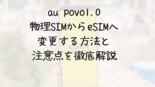 生活 au povo1.0|物理SIMからeSIMへ変更する方法と注意点を徹底解説 「au povo1.0を物理SIMからeSIMに変更できるの?」と悩んでいる方は多いのではないでしょうか。実は、以前は「変更不可」と言われていたpovo1.0でも、現在は公式にeSIMへの切り替えがサポートされています。ただし、手続きには準... 生活