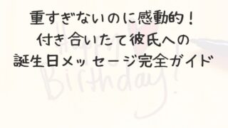 イベント・行事 重すぎないのに感動的!付き合いたて彼氏への誕生日メッセージ完全ガイド 付き合いたての彼氏にとって、最初の誕生日は二人の関係を深める大切なタイミングです。ただ「おめでとう」と伝えるだけでも嬉しいけれど、ほんの一言に愛情や感謝を込めることで、誕生日は特別な思い出に変わります。この記事では、重すぎず自然に気持ちを伝... イベント・行事